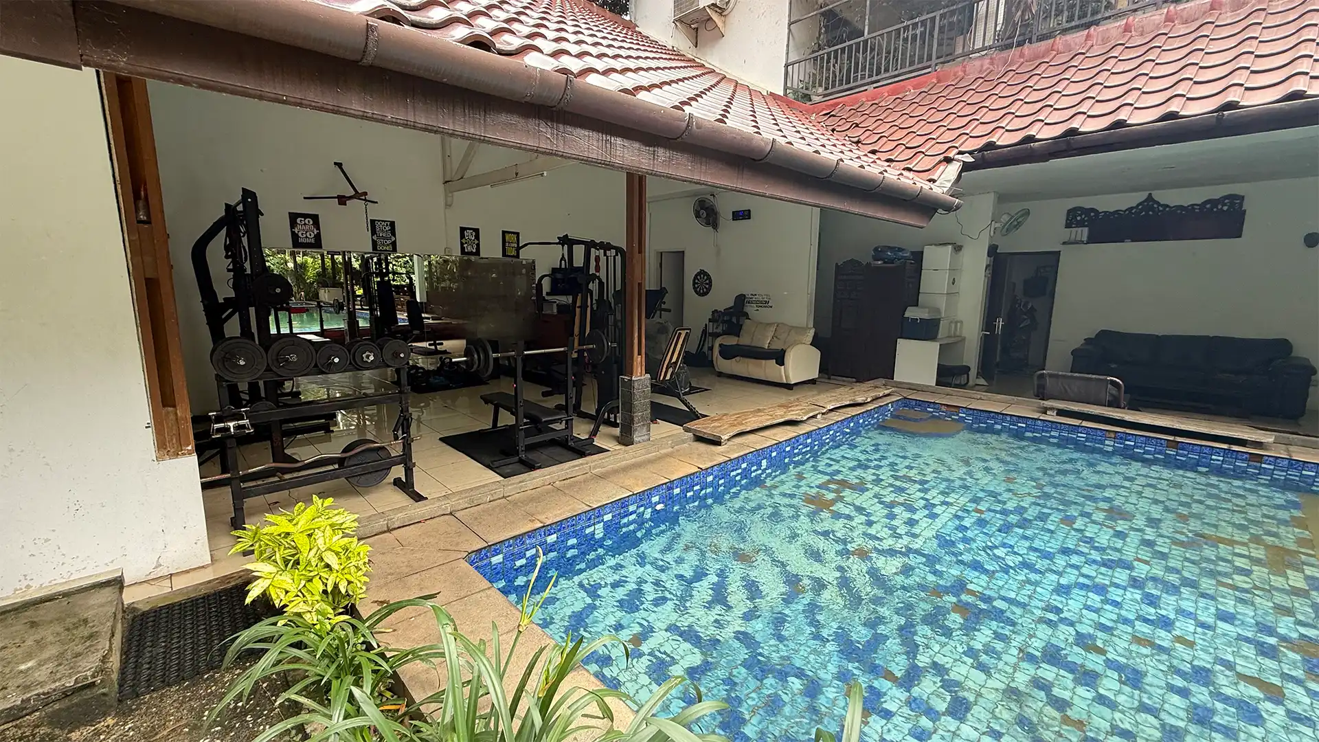 The residence is thoughtfully arranged to accommodate both communal living and private personal spaces. Large living and dining areas form the central hub of the home, creating a comfortable environment for gatherings, family activities, or entertaining guests. With ten bedrooms supported by six bathrooms, the layout offers remarkable flexibility for extended family members, guest suites, workspaces, or staff accommodation. The expansive land area also allows the property to maintain a private outdoor environment with a private swimming pool and open garden space, enhancing the overall residential atmosphere.